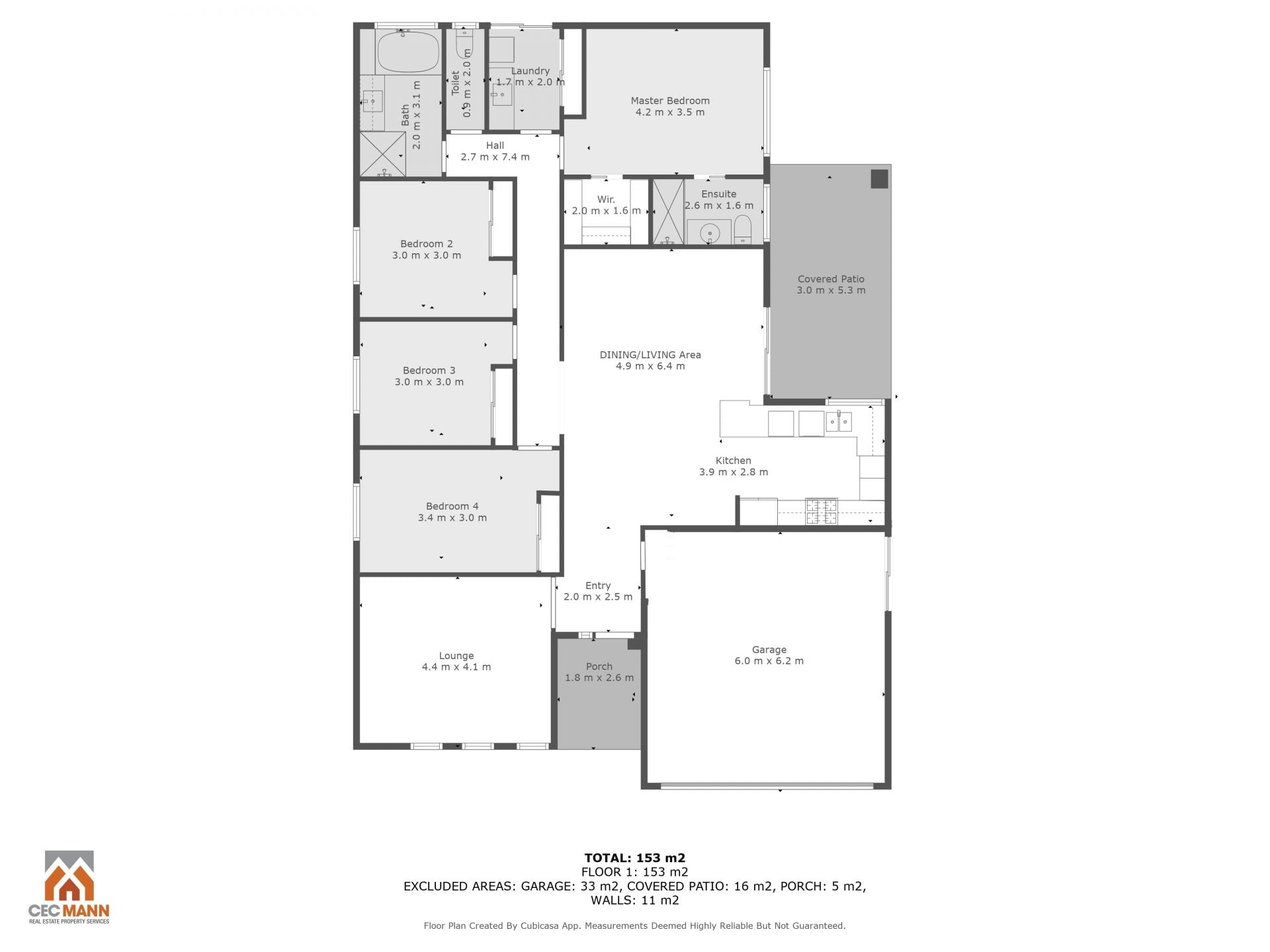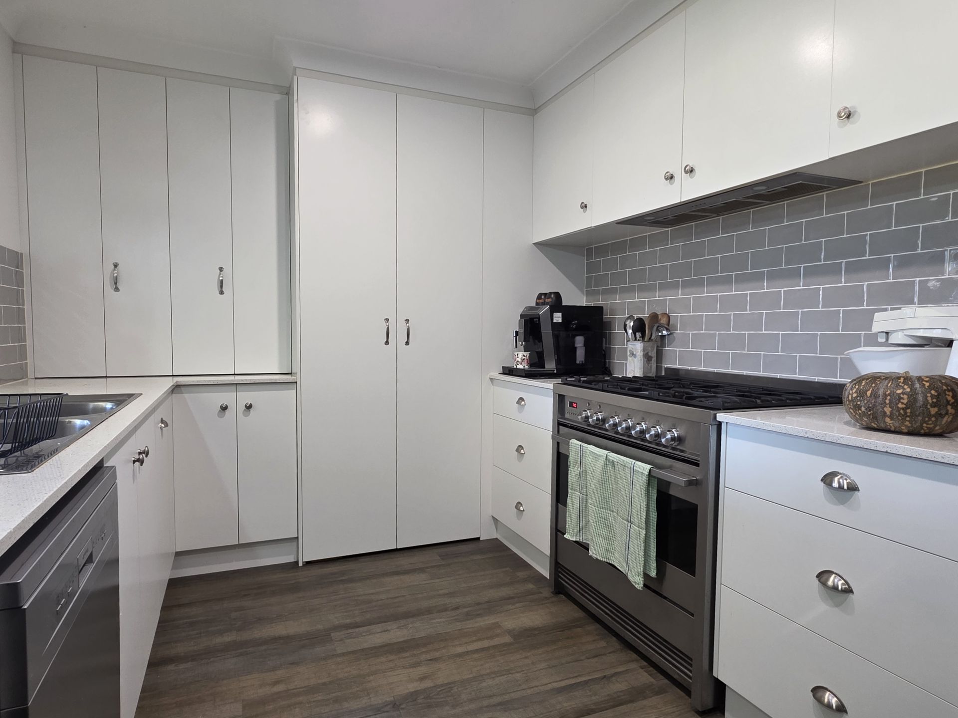 The main bedroom features a walk-in robe and ensuite with Caesarstone finishes, while the remaining bedrooms include built-ins. An open plan kitchen and dining area flows seamlessly to the covered outdoor entertaining space, while a separate lounge provides the perfect spot to relax. The kitchen is well-appointed with Caesarstone benchtops, ample storage, dishwasher and large 900mm electric oven and gas cooktop. Both bathrooms and the laundry are thoughtfully designed, with a linen/storage cupboard for added practicality.
