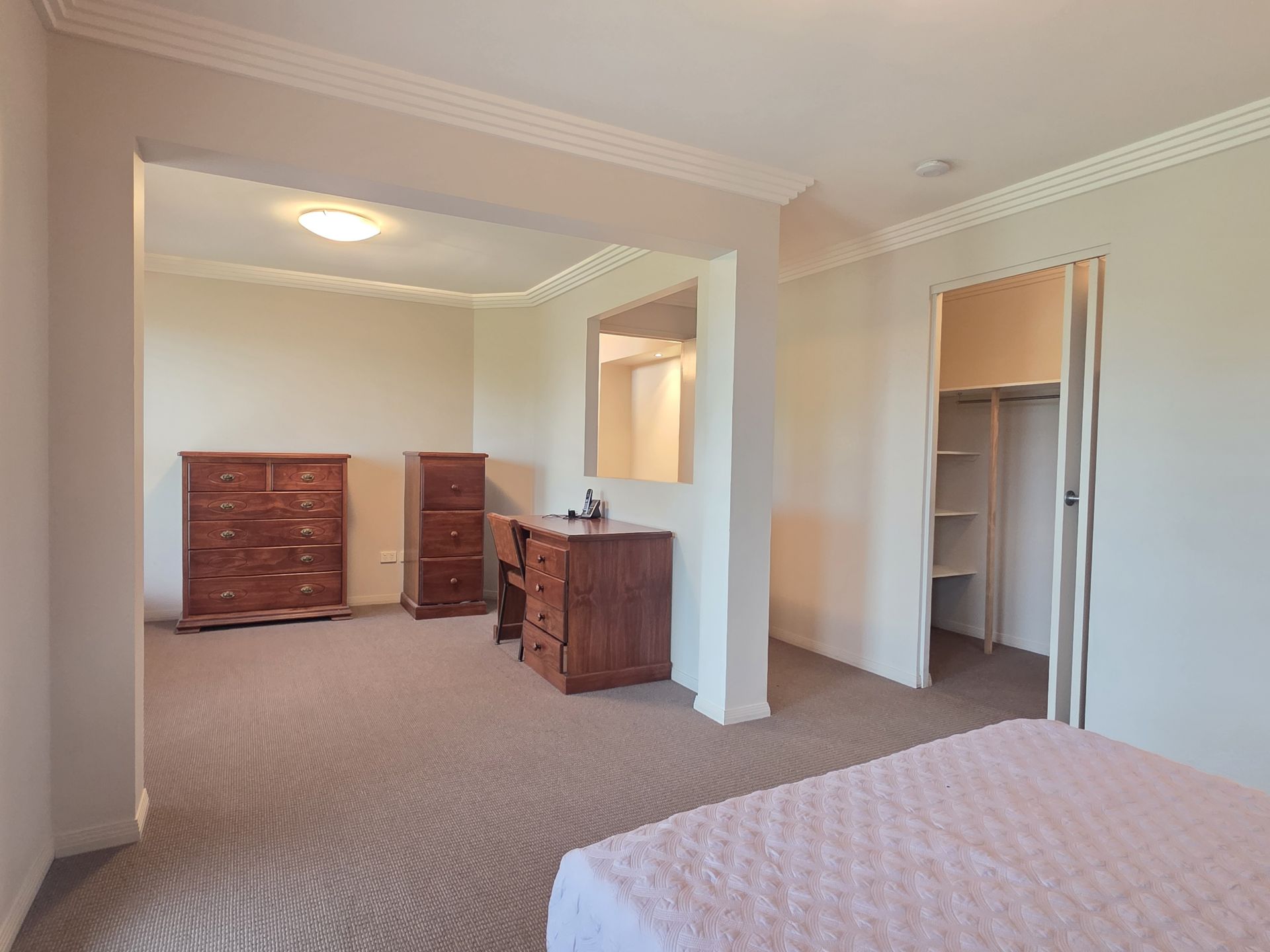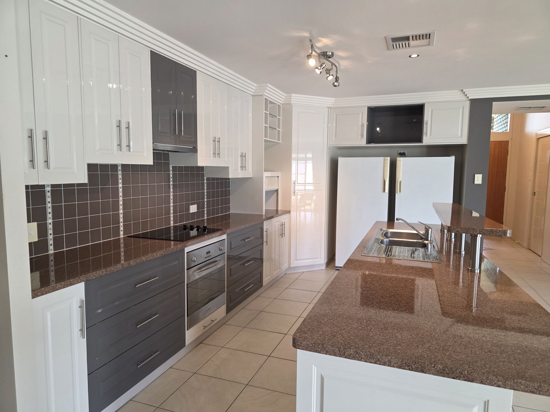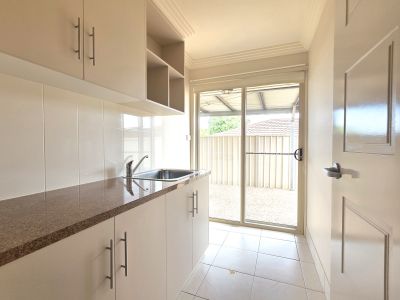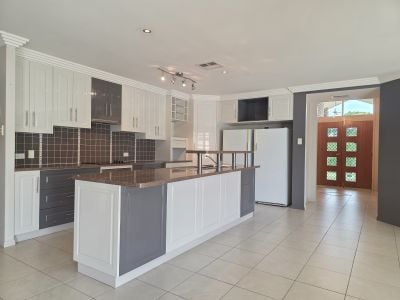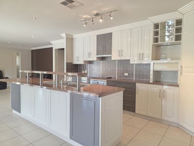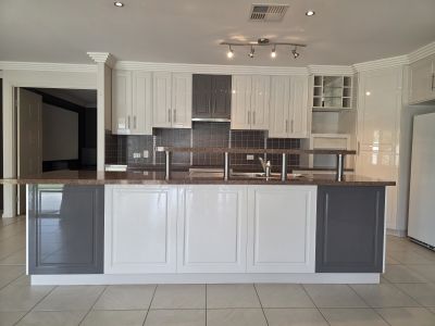 The kitchen is both stylish and functional, showcasing a modern two-tone, two-pack finish, ceramic cooktop, wall oven, and dishwasher, and flows effortlessly to the outdoor entertaining area. Year-round comfort is assured with fully ducted reverse-cycle air conditioning, while a 5kW solar system helps reduce energy costs.