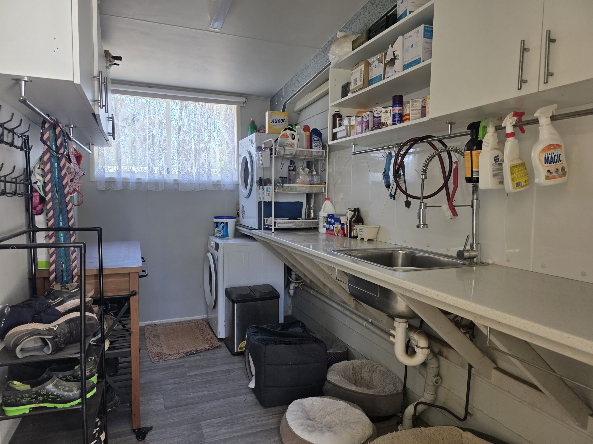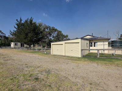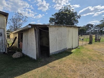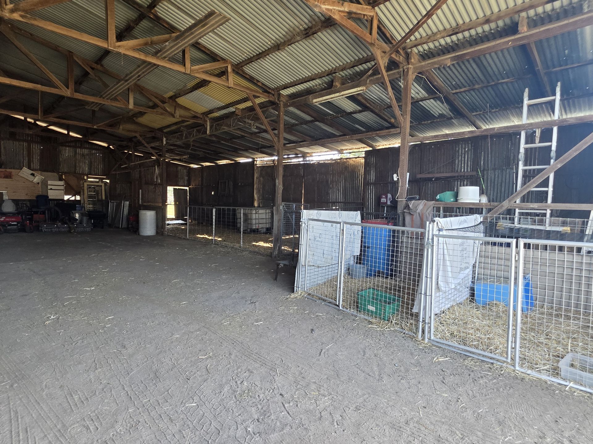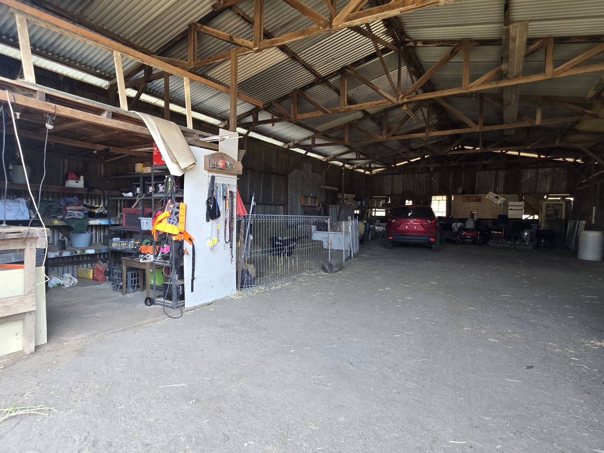 Practical outbuildings and improvements are a standout: the property is fenced into eight paddocks with ring-lock fencing, has four dams (two spring-fed), an 18.5m x 13.5m machinery shed and multiple shelters, a double garage, extensive animal yards and pens, chicken coop and stable areas. Currently being used as a factory, is a second moveable dwelling which could easily be used as a granny flat or even a teenage retreat. Also, a second driveway gives easy access to the upper paddock.