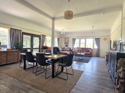 Set on 36.17 acres (14.64 ha) at Pozieres, approx. 20 minutes from Stanthorpe, this well-appointed hobby farm is ready for family life or small-scale grazing. The weatherboard home offers three bedrooms with built-ins, main with ensuite, study or fourth bedroom and a generous open plan kitchen / dining / living zone with high ceilings. The modern kitchen includes a new wall oven with air-fryer, gas cooktop and dishwasher, while new flooring throughout provides a fresh finish. Heating and cooling are covered with wood heating and two reverse-cycle air conditioners.